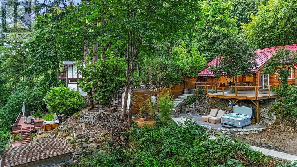 Live amongst the old growth forest of Goldstream Provincial Park. Welcome to your own west coast retreat, located at the end of a no exit road within city limits. Spread over two oceanfront lots, this assemblage offers resort-like living with a short commute to the city centre. This ultra rare paradise forms an extremely private compound overall and between each parcel. Each lot boasts its own home, driveway, well, hot tub, septic system, and shoreline deck, all with no homes on either side. Escape the city and live amidst the seals, salmon, eagles and hummingbirds. Gaze contentedly at the starry sky from the comfort of your oceanfront hot tubs. Immerse yourself in the whimsies of the coastal fauna as their business ebbs and flows with the tide of the provincial park estuary below, which in summer warms to lake-like temperatures for year-round swimming. Stroll along your private boardwalks, through lush forest, down to the water’s edge and launch your kayaks and paddle boards directly into the ocean. This is your chance to live in an extension of the park with loads of room for family and guests, or the opportunity to subsidize your finances with a highly desirable rental. Contact us today for an info pack. (id:36535)