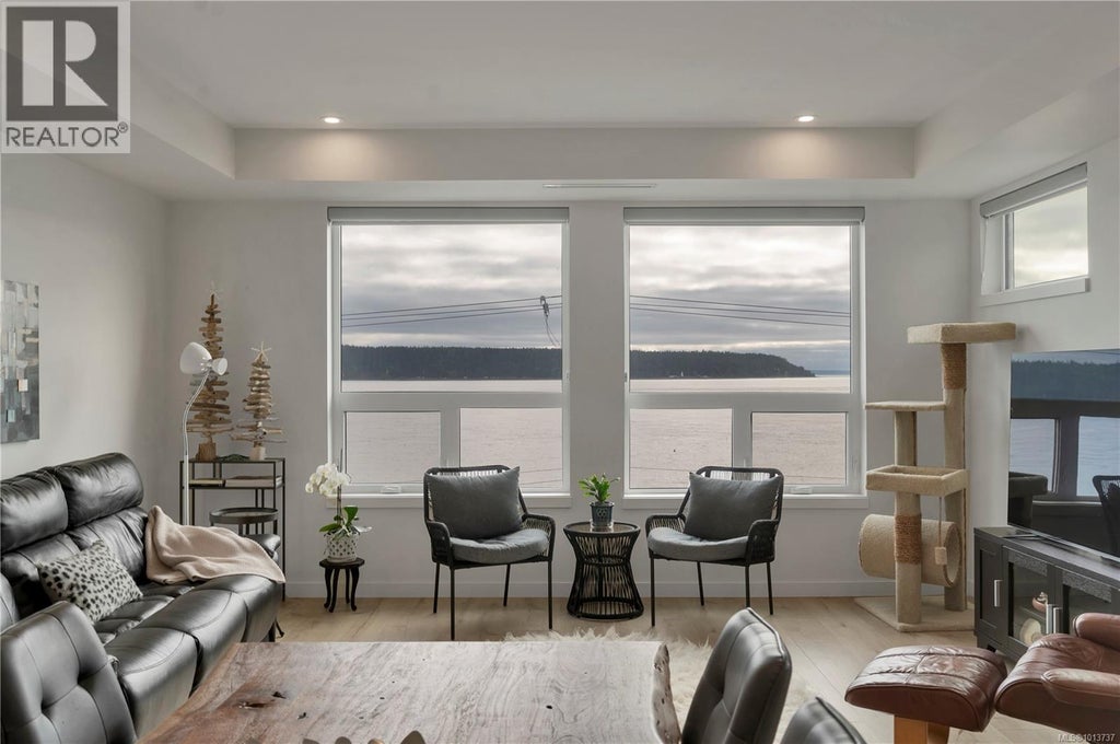 This Omnia unit blends comfort and style with ocean and nature views. The spacious primary bedroom offers a walk-in closet and spa-inspired ensuite with double vanity and a herringbone-tiled shower. A second bedroom overlooks peaceful green space, paired with a full bath and relaxing tub—ideal for family or guests. A bright den makes a perfect office, reading nook, or creative space. Everyday conveniences include in-unit laundry, undercover parking, and a pet- and rental-friendly building. Stay comfortable year-round with a heat pump for heating and cooling. From the front deck, enjoy sweeping ocean views and passing cruise ships; from the back, take in the quiet rhythm of nature. Whether a year-round retreat or summer escape, this home is a rare blend of luxury, privacy, and West Coast living. (id:36535)