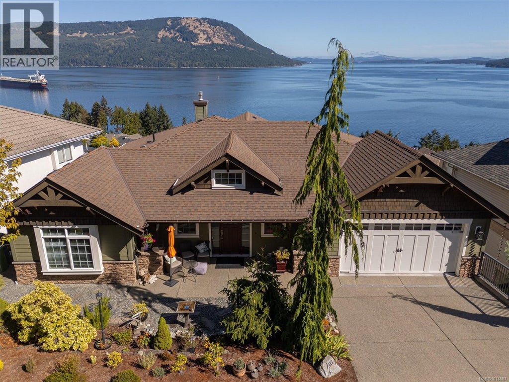 Welcome to 412 Seaview Place, a custom-built executive home with breathtaking views of Salt Spring Island, Satellite Channel, and Mount Baker. Located in the gated 55+ community of Arbutus Ridge, enjoy resort-style living with a golf course, pool, gym, tennis, RV parking, 24/7 security, and vibrant social clubs, all minutes from essential amenities. Built in 2014, this main-level living home features a gourmet kitchen with Dacor gas stove, walk-in pantry, and gas BBQ hookup. Interior highlights include engineered hardwood, coffered ceilings, E3 Low-E windows, surround sound, and a gas fireplace. The primary suite offers a spa-like ensuite, walk-in closet, and in-floor heat. A private office, guest bath, laundry, and double garage complete the main level. Downstairs includes two bedrooms, full bath, rec room with fireplace, storage, and a versatile bonus space, plus an unfinished third level ready for your ideas. Discover refined West Coast living at its finest. (id:36535)