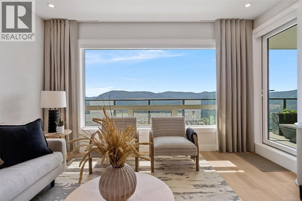 Immerse yourself in luxury with this 2 bed, 2 bath home plus a versatile den with breathtaking views over the valley, mountains, and ocean. Offering over 1,100 sq. ft. of elegant living space, this residence boasts high-end finishes throughout and a spacious outdoor patio perfect for relaxation or entertaining. This beautiful home includes Fisher & Paykel kitchen appliances, ensuite heated flooring, quartz countertops and extended backsplash, storage locker, and 2 parking stalls. Welcome to The Ridge at Vista Point, where breathtaking views of the Juan De Fuca Strait, the Olympic Mountains, downtown Victoria, and the Sooke Hills define luxury living. Nestled serenely on the south side of Skirt and Bear Mountain, this exquisitely designed complex offers some of the largest floor plans on the market, with oversized outdoor areas that are perfect for entertaining. Each residence includes a secure underground parking space, storage locker, multi-head ductless heat pump for efficient heating and cooling, a gas cooktop, high-quality vinyl flooring, and quartz countertops throughout. Building amenities feature a state-of-the-art gym, elegant community hosting areas, and a sophisticated patio. Residents enjoy access to Bear Mountain's world-class offerings, including two championship golf courses, an exclusive gym and pool, fine dining, scenic hiking trails, and more. Conveniently located with easy access to the TC1 highway and just minutes from essential amenities, The Ridge at Vista Point provides unparalleled luxury living. Show Home open most Saturdays from 1-3pm or call your realtor today to book a viewing! (id:36535)