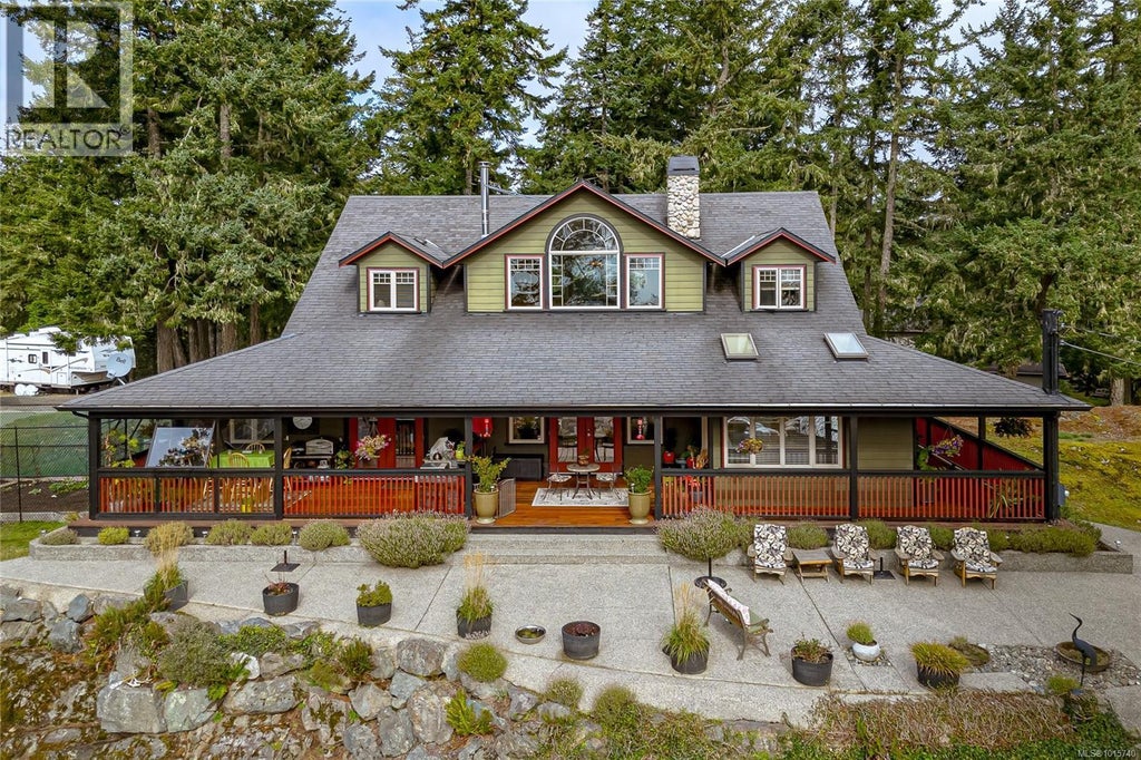 Character, charm, and attention to detail meet the modern conveniences of newer construction! Perched atop Mt. Matheson, this exceptional 1.25-acre property offers SWEEPING VIEWS of the Juan de Fuca Strait and Olympic Mountains. The custom-built home features 3 bedrooms (plus den), and 3 bathrooms. MAIN FLOOR living provides exceptional flexibility, with a luxurious primary ensuite and deck access to a private hot tub. A vaulted living room with cathedral windows and a wood-burning fireplace creates an inviting focal point, complemented by a warm, wood-accented kitchen and spacious dining area. Enjoy sunsets from the wraparound deck or entertain in the outdoor kitchen and dining space. Additional highlights include a 3-car garage, RV parking, beautifully landscaped gardens with irrigation and lighting, a heat pump with A/C, and CRD water with a purification system. Quiet charm of East Sooke in an exclusive hilltop community just 6 minutes to groceries and 20 minutes to everything else! (id:36535)