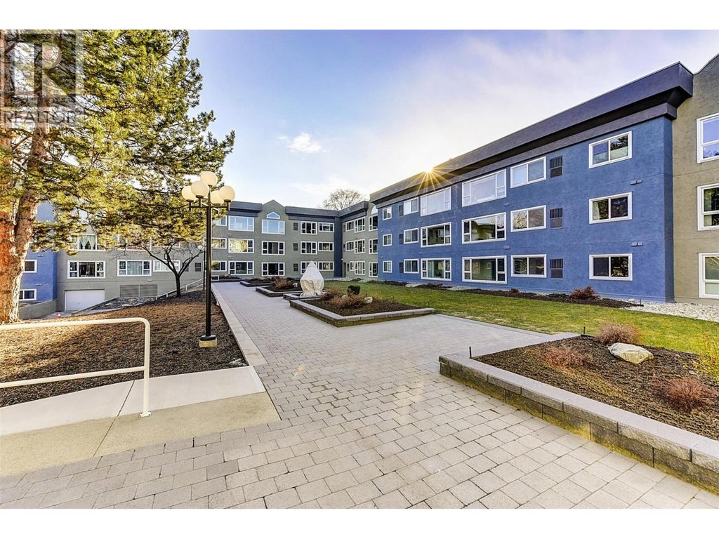 Bright 2-bedroom, 2-bath condo at The Wedgewood on Sutherland Avenue. This condo is in a prime location, within easy walking distance of shopping and amenities, including the Capri Centre. The spacious living room leads to an enclosed sunroom, ideal for relaxing and enjoying the eastern exposure and morning sun. The kitchen features plenty of cabinetry, a newer dishwasher and stove, and an enlarged pass-through opening to the dining area. The primary suite offers a walk-through closet with built-in shelves and a 3-piece ensuite. The large second bedroom is ideal for guests, with an adjacent 4-piece bathroom. Spacious laundry room with side-by-side washer and dryer. The Wedgewood offers a wonderful dining room with buffet-style dinners through their in-house kitchen and catering service, three days per week on a user-pay basis. The lounge area features happy hours several times a week, and the beautiful grounds host bocce ball tournaments and community barbecues on a regular basis. Residents of The Wedgewood also enjoy access to the on-site gym, games room with billiards tables, and two guest suites that can be booked for family and friends. This is a wonderful home in a very convenient location, just half a block from many restaurants, shops, and services—with a unique “neighborhood” feeling (id:36535)