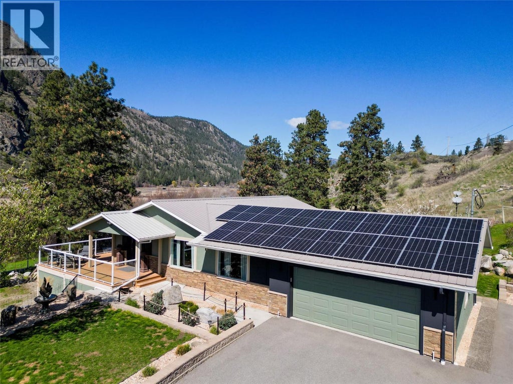 CLICK TO VIEW VIDEO: Discover the freedom of self-reliant living at 1998 Highway 97, just south of Okanagan Falls. This 2004-built walkout bungalow sits on 1.41 acres and has an impressive EnerGuide rating of 1. Enjoy privacy, updates, and modern efficiency. Free yourself from costly levies and municipal upgrades with your own private well, on-site septic system, and a 15.4 kW solar array paired with twin Tesla Powerwalls for power storage and 50 amp EV charging. The double garage, RV parking, and automatic gate provide convenience and security, while architectural metal panels, stucco exterior and metal roofing deliver striking curb appeal. Inside, the bright open-concept living space is highlighted by smart appliances, sleek finishes, and large south-facing windows. The main floor offers 3 bedrooms and 2 bathrooms, including a primary suite with ensuite. The walkout basement expands your options with a spacious rec room and unfinished areas for a gym or studio. Outdoors, enjoy the large composite deck, fruit trees, chicken coop, and a private gazebo with a hot tub. This property backs onto Vaseux Lake, a bird sanctuary and fishing paradise. True independence with all the lifestyle benefits of the South Okanagan. Buyers to verify measurements if deemed important, some storage space in the basement is unfinished. (id:36535)