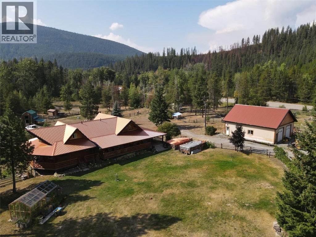 Spectacular riverfront property on the Moyie River in Yahk, BC, offering over 2,700 ft of private frontage with exceptional fishing holes, swimming, rafting, and tubing. This unique income-generating property features a finely crafted log home with more than 2900 sq.ft of living space plus a semi-finished 1185 sq.ft. basement. An approximate 2270 sq.ft wraparound deck, mostly covered, surrounds the home., perfect for entertaining or relaxing with panoramic views. The land is set up for horses with cross fencing, corrals, and apple trees that provide natural snacks for the animals. Enjoy the many outbuildings this property has to offer. A 40 ft x36 ft garage with two 10 ft doors offers excellent storage. With no zoning, the opportunities are endless. The property currently producing income from eight highway signs, each generating $1,000/year, with room to add many more. In addition, there are 24 -12 ft x 25 ft dry storage units creating further potential for revenue growth. This is a rare chance to own a versatile riverfront property with unmatched potential. (id:36535)
