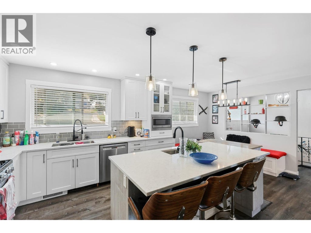 WOW - Exceptional price!! Great view on Grandview Terrace in a neighborhood of fine homes overlooking the beautiful Kamloops Area! Completely renovated home with a pool and features a 1-bedroom in-law suite. Lots of updates that include a brand new Top40 Woodworks gourmet kitchen with high end Quartz countertops, prep sink, bench seating with built in storage, wine fridge, gas ranges in both upstairs and lower kitchens. The home has new luxury vinyl plank flooring, updated bathrooms with tile, new vanities and countertops, new light fixtures and new doors throughout, soundproofing between floors, new gas fireplace, newer 98% HE Furnace, new double pane vinyl windows, new gutters, inground pool that has a 2019 liner and pool pump, 2017 sand filter, comes with a robotic pool vacuum and new solar cover. RV parking beside the house, lots of space for your vehicles or toys. The property is move in ready! Quick possession is available. All measurements are approximate. 24 hours notice due to tenants in suite. (id:36535)