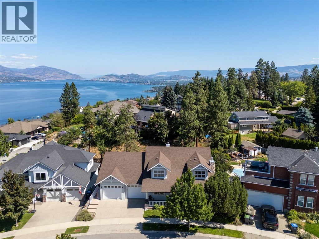 Stunning renovated family home with lake views in sought-after Kettle Valley. The bright, open kitchen features a large island, Jenn-Air stainless steel appliances, modern cabinetry, and a spacious pantry. Enjoy lake views from the kitchen, dining, and living areas with floor-to-ceiling windows and an updated fireplace. Step out to the covered patio for outdoor dining or to relax and watch the sunset. The primary suite offers a walk-in closet and full ensuite with glass shower, double sinks, and a soaker tub overlooking the lake. Two additional bedrooms with built-in organizers, a renovated main bathroom with double sinks, and a redesigned laundry/mudroom with garage access complete the main level. The lower level opens to a private fenced yard with flat lawn areas and a second deck with hot tub and glass railings. Inside, the bright basement features a large family room, theatre room, rec room, two bedrooms, and a full bathroom—ideal for guests or family. Walking distance to Chute Lake Elementary, Kettle Valley Village shops, and Quilchena Park. Move-in ready and perfect for families looking for space, style, and views. (id:36535)