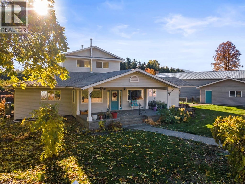 Welcome to this versatile 2.67-acre property in the heart of Erickson — a rare combination of residential comfort, workspace, and open land. The bright two-storey home offers 3 bedrooms and 2 bathrooms, including a spacious primary suite with a walk-in closet and a large ensuite featuring dual sinks, a soaker tub, and a separate shower. The main level features an inviting open-concept living area with beautiful flooring, a cozy wood stove, and a modern kitchen with granite counters and crisp white cabinetry. Upstairs, a bonus living space with a half bath and access to a covered deck offers an ideal retreat or guest area. Outside, the property impresses with a beautifully landscaped yard, paved patio, and several well-maintained outbuildings. A detached one-car shop includes a self-contained suite with kitchen, bedroom, and bathroom, while the large detached shop with a two-car garage provides extensive storage, workspace, and high-clearance doors for larger equipment or vehicles. Additional sheds and covered storage areas add even more flexibility. The front field provides open space for small-scale agriculture, gardening, or hobby use. Located minutes from downtown Creston in a sought-after agricultural corridor, this property blends practicality with peaceful country living. (id:36535)