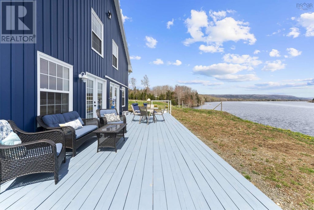 Set on a striking point of land overlooking the Annapolis River, this 2,000 sq. ft. home delivers relaxed coastal living with panoramic water views and a connection to nature thats hard to match. Framed by the North and South Mountains, the ever-changing tidal river creates a calm, cinematic backdrop to daily life, from misty mornings to starlit nights. Inside, the open-concept living and dining areas are bathed in natural light with panoramic river views as your daily backdrop. The kitchen is well-equipped with modern stainless-steel appliances, seamlessly connected to the heart of the home. Two sets of French doors open to an east-facing, maintenance-free deck, perfect for morning coffee or evening gatherings. The main level features two generously sized bedrooms and a full bathroom, while the upper level is dedicated to a spacious primary suite complete with walk-in closet, private balcony, and ensuite bath. In-floor heating, ductless heat pumps, and a 12 kW solar panel system ensure year-round comfort and energy efficiency. With steel siding and a steel roof, the home offers true peace of mind with low-maintenance living. Also available for purchase is 3 Massachusetts Rd. Together, these two properties offer a rare opportunity for a multi-generational retreat, a guest house setup, or simply more space to relax and enjoy the best of waterfront living. Close to the historic town of Annapolis Royal, one of Canadas oldest settlements, this property offers the best of both worlds: serenity and seclusion with easy access to culture, cuisine and community. Annapolis Royal is famed for its beautifully preserved streetscapes, farmers markets, historic gardens and vibrant art scene. Stroll through centuries of history, enjoy local cafes, or explore nearby Fort Anne. (id:36535)