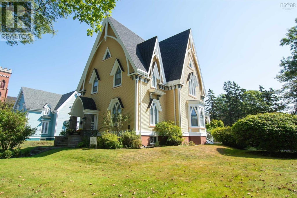 This is certainly one of Nova Scotia's most unique heritage properties. Located within walking distance of Yarmouth's shops and cafes, this striking example of Gothic Revival architecture stands as living proof of exceptional 19th-century craftsmanship. Inside, the home retains much of its original charm; featuring both hardwood and softwood flooring, built-in cabinetry, and intricate woodwork throughout. With 5 bedrooms and 2 1/2 bathrooms, the house blends style and function, lovingly renovated with 32 new windows, a customized library, and newer appliances. The upgrades extend beyond the interior, where you'll find a freshly-painted exterior (house and coach house) along with a restored backyard fence with multiple gates; all contributing to the property's curb appeal. This home offers so many options - as a spacious family retreat, a cozy well-established bed & breakfast, or many other home-based business opportunities. With its historic charm and modern upgrades, it's the perfect setting for you. (id:36535)