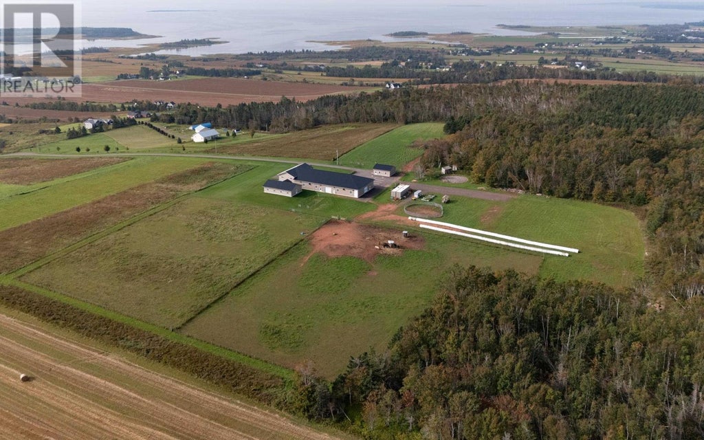 Nestled in the heart of Alexandra, Prince Edward Island, lies a remarkable investment opportunity for individuals seeking to capitalize on the region's commercial potential. This expansive 125-acre mixed-use property offers a canvas of development possibilities, combining modern office spaces, residential comfort, and agricultural utility, all in one comprehensive package. Constructed in 2014 with a recent office extension in March 2020, the main building complex spans nearly 11,000 square feet and includes a luxurious owner's living unit. The property boasts additional land ready for future development, supplemented by outbuildings such as a 7,200-square-foot heated indoor riding arena, an equipment shed, and a multifunctional shop/garage. The property presents a picturesque rural setting with minimal area commercial development, ensuring privacy and serenity. Its long access lane leads to an elevated position with breathtaking water views of Pownal Bay, setting the stage for a tranquil yet strategic investment locale. Approximately 7 acres of meticulously fenced paddock areas, as well as walking and riding trails, provide a pastoral charm that complements the commercial prospects of the site. The potential for future expansion is considerable, with a large site area designated for development. The current setup allows for a variety of uses?be it maintaining the equestrian facilities or repurposing the extensive square footage for alternative enterprises. This unique property, situated within a stone's throw from Stratford and the capital city of Charlottetown, is a rare find. It offers investors quality assets with reuse and redevelopment potential in a sought-after area of the province. Lots of potential for a buyer that could tailor the facility, land, and infrastructure to a variety of uses, capitalizing on its strategic location and the privacy provided by its 0.85 km laneway from Pownal Road. (id:36535)