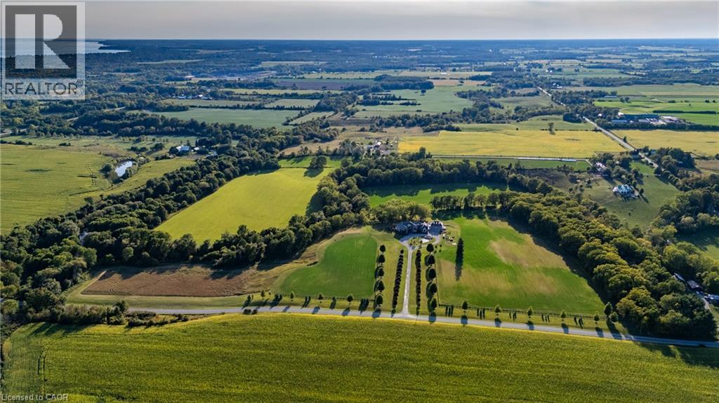 Nestled in the lakeside town of Port Dover, 649 East Quarter Line represents a rare opportunity to acquire a private estate of exceptional scale and refinement. Set on 48 acres of pristine countryside, this modern stone residence combines serenity with convenient access to town amenities. Spanning more than 7,600 square feet, the home offers 4 bedrooms and 6 bathrooms, including two primary suites,one on each level. Each features a spa-inspired ensuite, expansive walk-in closet, and covered porch access with automated screens. The upper suite further distinguishes itself with a coffered ceiling, sitting area, private office, and a bespoke dressing room with center island. Exceptional views from every room frame rolling fields and pastoral landscapes. The chef’s kitchen is both functional and elegant, showcasing dual islands with quartz counters, Wolf appliances—including an 6-burner range with griddle—dual fridge and freezer, wine storage, and a professional hood fan. A fireplace-warmed dining area opens to a covered porch, while the sunken living room with its dramatic stone fireplace offers the perfect setting for entertaining. Additional highlights include a formal dining room, private office, and heated 4-car garage with direct mudroom access. Above the garage is a private guest suite with independent entry which offers versatile accomodations. A separate 3-door garage/workshop with epoxy floors provides space for equipment or recreational toys. Outdoors, the estate becomes a private retreat with tiered stone patios, shaded sitting areas, and a step-down pool with integrated hot tub. From the back patios, the vistas are breathtaking, expansive and ever-changing with the seasons, creating a serene backdrop for both morning and evening gatherings. Blending timeless craftsmanship, refined finishes, and acres of unspoiled natural beauty, this estate stands among Port Dover’s most distinguished offerings. Book your showing today. This lifestyle could be yours! (id:36535)