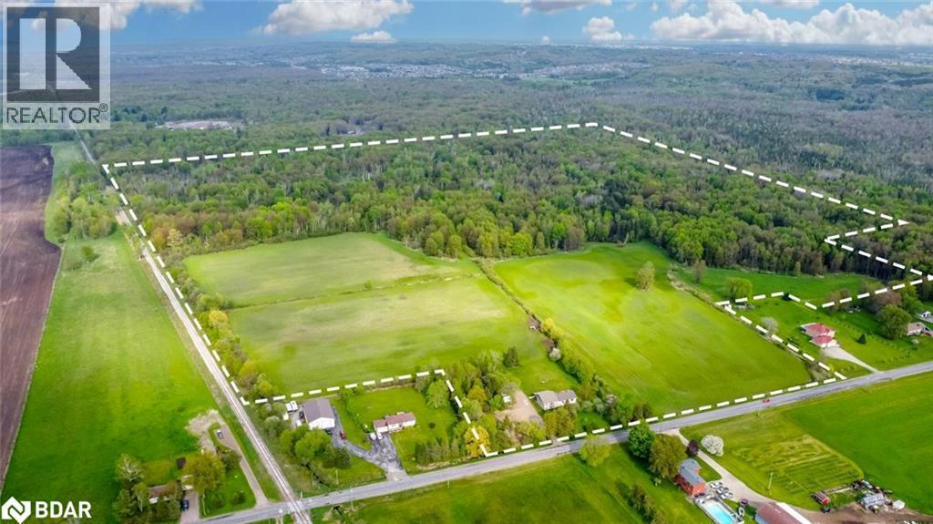 OVER 3,000 SQ FT BUNGALOW FEATURING IN-LAW POTENTIAL NESTLED ON 83.47 ACRES WITH WORKABLE LAND & MINUTES TO BARRIE! Nestled on an expansive 83.47 acres of fields and forest, this spacious bungalow offers a very private setting just a 5-minute drive from Barrie, close to golf courses and ski hills. Boasting agricultural and environmental protection zoning, the property features a diverse assortment of trees, including cherry, Cortland apple, lilac, crabapple, pear, McIntosh apple, and more. Approximately 35 acres of the land are dedicated to workable fields currently used as hay fields, while scenic walking trails wind through the forested areas, providing the chance to enjoy nature at its finest with an abundance of local wildlife. Step inside to discover over 3,000 square feet of finished living space, featuring hardwood and laminate flooring throughout most of the home. The generously sized eat-in kitchen presents ample cabinetry, stainless steel appliances, and a mosaic backsplash. The primary bedroom is complete with a walk-in closet and ensuite, while the main bathroom boasts a large soaker tub and separate shower. Descend to the finished basement, which features a separate entrance, in-law suite potential, and a bathroom rough-in. Enjoy the spacious covered back porch and patio area overlooking the tranquil property. Updates include newer shingles, attic insulation, a sump pump, and appliances. Multiple 100-amp electrical panels, a water softener, and a drilled well ensure convenience. With the included 8 x 10 shed for additional storage space, ample driveway parking for up to 20 vehicles, no rental items, and low property taxes, this property offers a rare opportunity to embrace country living without sacrificing convenience. (id:36535)