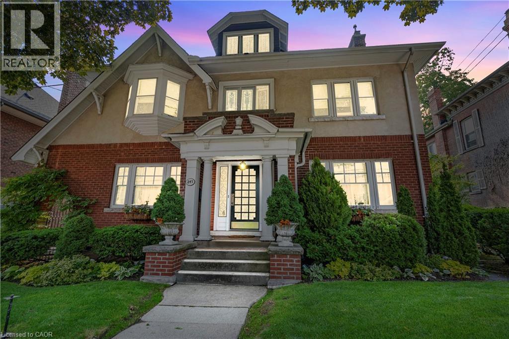 This stately 2.5-stry residence sits on a mature 46’ x 85.33’ lot in Hamilton’s prestigious Durand neighbourhood. Showcasing timeless curb appeal, the front walkway leads to a covered porch framed by Doric columns & an entry door w/ wrought-iron grillwork. Inside, a grand foyer w/ crown moulding, a sweeping staircase & French doors introduces elegant principal rms. The formal liv rm feat a gas FP, an intricate mantle w/ hidden side cabinet, & windows overlooking both gardens. The adjoining din rm impresses w/ built-in cabinetry, leaded stained glass, and rich millwork throughout. The kitchen is a showpiece, featuring heated limestone floors, custom cabinetry w/ beveled glass, marble counters, under-cab lighting, pantry, & premium S/S appliances incl a Viking gas range, Sub-Zero fridge, & Miele d/w. Surrounded by windows, it opens to a covered porch w/ a Phantom screen, perfect for indoor-outdoor living. A handy mudroom w/ dbl mirrored closet completes the main lvl. Heading up the main staircase, a landing of stained glass welcomes you to the 2nd level, feat a 25.9’ x 13’ primary suite w/ sitting area, dual closets, & access to a bright den/sunroom (heated flrs). 2 add’l bdrms - one w/ a bay window & ensuite, the other with garden views - plus a 4-pc bath w/ a jetted tub, stained glass, & hand-painted murals complete this lvl. The 3rd lvl offers a private bdrm retreat w/ a 3-pc ensuite, skylights, gas FP, storage, & cozy sitting nooks. The lower lvl adds laundry w/ custom cabinetry, a 2-pc bath, storage & workshop space. Outside, enjoy a private yard w/ a fountain, covered composite porch, retractable awning, gas BBQ hookup, detached garage + surfaced parking for 2 & security lighting. Add feat incl: hardwood flrs, custom window coverings, c/air, HEPA air purifier, a security sys & more. Walkable to the Locke St cafés, boutiques, art galleries, hospitals, GO Transit, parks & trails - Durand offers historic character & an unmatched lifestyle of quiet sophistication. (id:36535)
