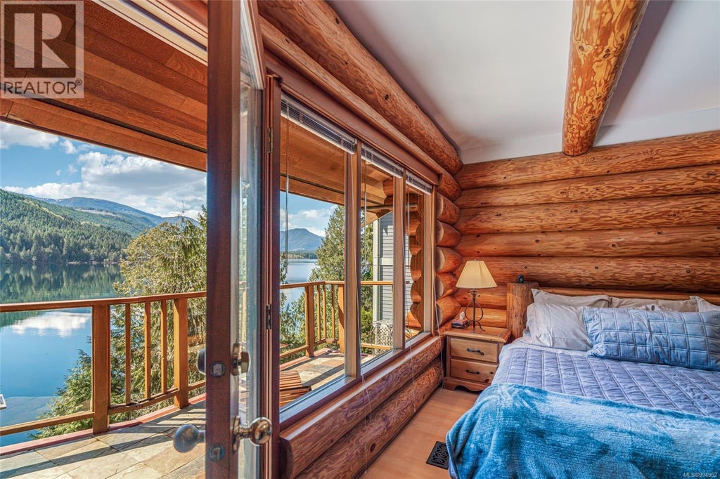 Experience the Best of Sproat Lake Living! This exquisite custom-built log home offers over 3,900 sq ft of living space with 4 bedrooms and 5 bathrooms, nestled on a .86-acre lot with more than 90 feet of pristine waterfront. The heart of the home is a breathtaking great room featuring soaring vaulted ceilings, rich honey-colored logs, and an abundance of natural light pouring in through a wall of windows and skylights. A majestic stone fireplace adds a cozy touch, all while you take in stunning views of the lake and surrounding mountains. The spacious kitchen boasts a welcoming eating nook and a nearby family room, perfect for entertaining. Step outside to the covered deck and unwind on warm summer evenings. The luxurious primary suite opens to a private balcony and includes a walk-in closet and an ensuite with a relaxing soaker tub and walk-in shower. Upstairs, you'll find an open loft area. The lower level is designed for comfort and convenience, with a second kitchen, family room, rec room, two bedrooms, two bathrooms, and laundry, plus access to a covered patio. For outdoor enthusiasts, your own private beach and dock await, offering direct access to the lake for swimming, boating, fishing, and enjoying all that Sproat Lake has to offer. All measurements are approximate and must be verified if important. (id:36535)