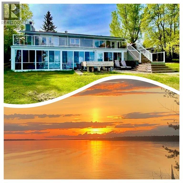 Looking for the perfect lakefront lifestyle? Welcome to this stunning Sunset Bay home on a rare ½-acre level lot with direct lake access—perfect for your private dock and boat launch! Enjoy over 2,325 sq ft of living space with breathtaking lake views from the kitchen, dining, and living room, full-length windows and a spacious deck with glass railing so you can stare at the water and enjoy the sunsets!The chef’s kitchen features custom cabinetry and a large working island—ideal for entertaining. Cozy up in the living room with a wood-burning fireplace. The main floor offers 2 bedrooms, 2 bathrooms, and a generous walk-in pantry.The walkout lower level includes a spacious family room with sculptured stone walls,, an additional bedroom, bath, office/hobby room, and a full laundry room. You'll love the bar area and kitchenette with access to the spa pool, sunroom, and fitness area!The beautifully landscaped yard includes a 24'x30' garage with a pedway to the house, an 8'x12' shed, and lawn that stretches right to the beach, with a space to gathering around the firepit and telling stories, or having a picnic. There’s room for RV parking, with stunning views, and evenings under the stars!Enjoy community amenities like walking trails to the golf course and Sir Winston Churchill Park, a nearby playground, and a boat launch—all just steps away. Whether you're looking for a year-round residence or a turnkey family retreat, this lakefront gem has it all! (id:36535)