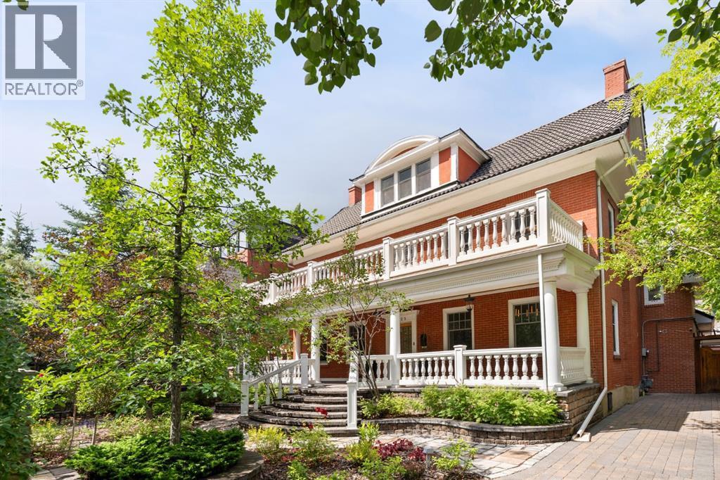 Introducing the Campbell Residence – A Rare Offering in the Heart of Elbow Park! Built in 1912, The Campbell Residence is a beautifully restored example of Georgian Revival-style architecture in Calgary. Situated on a 60' x 126' lot across from the Elbow River and surrounded by mature trees and lush landscaping, this 4,250 sq.ft. red-brick estate blends timeless architectural charm with modern functionality for contemporary living. Its dignified exterior—defined by formal symmetry, quality pressed brick, and a full-width veranda with classical balustrades—recalls the grace of substantial American colonial homes. But step inside, and you’ll find a residence that has been thoughtfully and extensively restored to today’s standards while preserving its historic soul. This home also has a storied past. Joseph Campbell acquired the lot in 1911, and in the decades that followed, it was occupied by several notable Calgarians, including Percy Carson, Mrs. Adelaide E. Parker, and Mrs. W.A. Stevens. From 1924 to 1927, it was the residence of John Burns, and nephew of Senator Patrick Burns. From 1929 to 1957, the home was owned by industrialist Frederick L. Irving and his family—marking over four decades of prominence in Calgary’s social and business history. Inside, expansive principal rooms offer exceptional flow for everyday living and elegant entertaining. The formal living room features original millwork, a fireplace, and French doors that open to a private southwest-facing patio with an outdoor fireplace. The formal dining room is ideal for hosting, while a cozy family room with its own fireplace provides a relaxed retreat. The beautifully updated kitchen pairs heritage style with high-end functionality—featuring classic white cabinetry, a generous walk-in pantry, top-tier appliances, a hearth-style sitting area with fireplace, and heated floors. The upper floors include four bedrooms—three with ensuites—highlighted by a luxurious primary suite with a 5-piece ensuite and a spacious laundry room. The third floor offers flexible space for a gym or quiet retreat, complete with a large bedroom and full bathroom—ideal for teens, guests, or a live-in nanny. A den or home office completes this versatile level. Modern upgrades are seamlessly integrated throughout, including new electrical and plumbing systems, built-in Sonos surround speakers, Nest thermostats, and secure electronic entry and car gates—all enhancing daily comfort. The lower level is currently undeveloped but includes full architectural plans, offering the opportunity to tailor additional living space to your needs. A triple heated attached garage with an oversized door also includes a lofted bonus space—perfect for a gym, art studio, or music retreat. Enjoy a walkable lifestyle just steps to top schools, parks, river pathways, the Glencoe Club, and the shops and restaurants of 4th Street. With its rich history, modern upgrades and unbeatable location, The Campbell Residence is a true legacy home. (id:36535)
