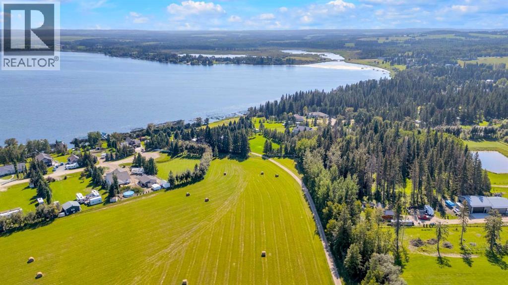 Rich in history, this grandeur lakeside acreage is amoung the last of its kind! The waterfront views offer breathtaking sunsets and morning sunrises you cannot wait to wake up to. Wide open skies above the custom designed fire pit area elevate your star gaze while mature landscaping and farm land surrounds you in privacy. Spanning over 250 feet of shoreline, let your dreams sore! Step onto the wrap around deck and into the main level where the kitchen and dining room take full advantage of southeast facing lake views. Cozy up in the east wing where the hot tub overlooks the lake and the fireplace connects the spacious living room. Two bedrooms and 5pc bathroom complete the main floor. Downstairs, the character of this 1960s farm home shines. With room to develop as you like, the walk out basement would make for a great games room, wet bar area or hobby space. Currently used for generous storage, it also features a bathroom, laundry and bedroom. Step outside and nestle into the covered patio area. Listen to the sounds of birds sing and gentle crash of waves along the docks. Thoughtful landscaping highlights the historic roots where Hiland Spruce Estates originated; boasting perfect blends of sun and shade. The NE corner of homesteading acres even features an adorable school house, rustic trapper’s cabin and well built 24’ x 14’ shed. The large 32’ x 46’ shop is a mechanic’s dream; heated with full size furnace, insulated, concrete pad, windows and 220 power. An expansive machinery shop with more than enough room to park all the vehicles, equipment and toys; features 30 amp RV power and 220v as well! The heightened addition also offers excellent dry storage. Home updates over the years include septic field, water well, shingles and vinyl siding, plumbing, electrical, furnace and remodeled design to its time of the early 90s. Over 27 acres boasting lake front views with flexibility to enjoy as your very own lakeside retreat or a rare investment portfolio addition – spe ctacular opportunity awaits! (id:36535)