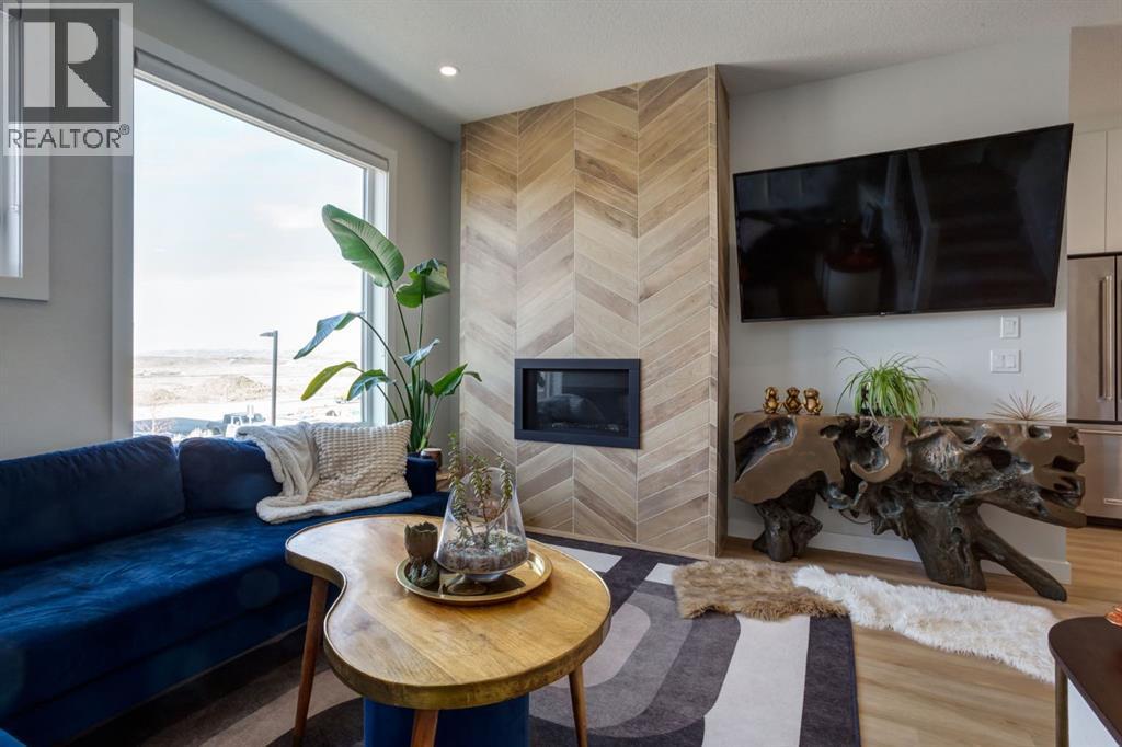 CHECK OUT NEW PRICE!!! Don't wait months to build! This stunning townhome is built by Streetside in the amazing new community of Harmony, and is practically brand new! Being just a short drive west of Calgary, the location is perfect for those who want the rural feel with city amenities!. Featuring two bedrooms and three bathrooms, this pristine townhouse has everything you are looking for! Walking in on the main level you are greeted by a cute flex space and separate foyer, plus storage room and closet. Up the stairs to your main level is a bright and open floor plan where your living room blends seamlessly into your kitchen and onto the dining room, perfect for entertaining. Your kitchen features stainless steel appliances, quartz countertops and gas cooktop. Off of the kitchen is a unique coffee station room and walk in pantry. Walk over and enjoy your morning coffee on the balcony just off the dining room. The main floor is completed by a 2 piece bathroom and upgraded gas fireplace in the living room. Headed to the upper level, you will find two large bedrooms, each with their own ensuite. The primary retreat features a 5 piece bathroom with attached large walk-in closet and separate water closet, while the second bedroom boasts a 4 piece bathroom and walk in closet. The upper level is completed by a nice sized laundry and storage room. This unit comes complete with an attached 2 car garage. Harmony residents can spend the summers at the beach and nearby lake, and easy access in the winters to the mountains! With heaps of remaining new home warranty, a brand new growing community, this home is a must see! Don't hesitate and contact your realtor to book a showing today! It may not last too long...... (id:36535)