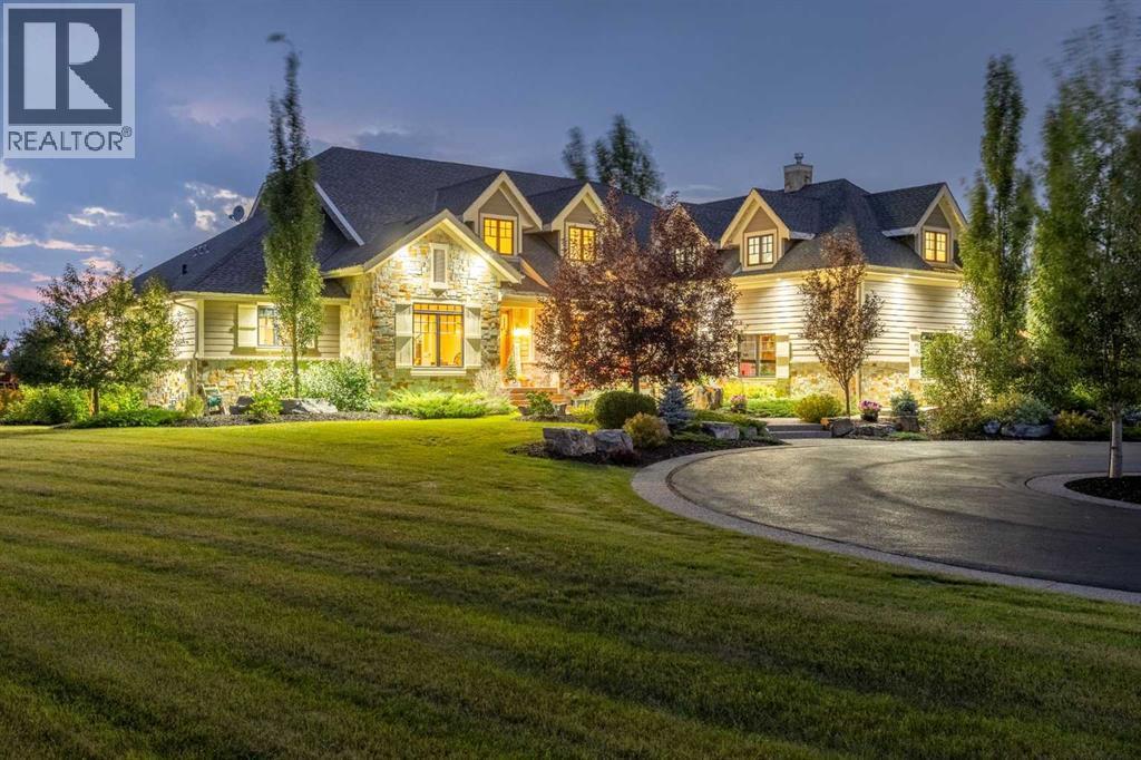 Set in the prestigious community of Swift Creek Estates, this spectacular custom home offers 5 bedrooms, 3.5 bathrooms, and over 6,300 sq ft of total developed living space on a beautifully landscaped lot with sweeping south and west mountain views.The main floor showcases a dramatic barrel-vaulted foyer, private office, formal dining room, and living room with 12' coffered ceilings, floor-to-ceiling windows, and a striking stone fireplace. The gourmet kitchen features commercial-grade appliances, custom maple cabinetry, granite countertops, slate flooring, and a sink overlooking the backyard. A bright breakfast nook, mudroom with custom millwork, and an exceptional laundry room with extensive cabinetry and organization add everyday function.The primary suite is a true retreat with French doors leading to the rear deck overlooking the mountains. The luxurious 5-piece ensuite includes double vanities, a jetted tub, glass shower, makeup area, and a spacious walk-in closet.Upstairs, two generous bedrooms each feature vaulted ceilings and walk-in closets. A full bathroom and a large family room loft with vaulted ceiling complete the upper level.The fully finished walkout basement offers two additional bedrooms, two full bathrooms, a large recreation/games room with wet bar and fireplace, plus a secondary kitchen and storage.Additional highlights include an oversized triple garage, radiant in-floor heating on the lower level, central A/C, whole-home audio, Cat-5e wiring, and alarm system. Recent updates include fresh interior paint (2025).Professionally landscaped for minimal maintenance, this property combines stunning architectural details with modern comfort in one of Springbank’s most desirable communities—just minutes from Calgary’s amenities. (id:36535)
