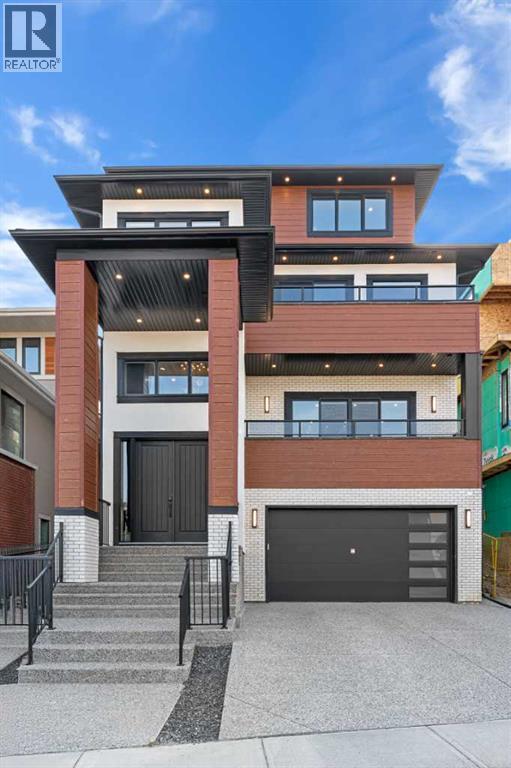Welcome to 467 Patterson Blvd SW, a luxury custom built residence in the newest subdivision in prestigious Patterson Heights. Thoughtfully designed with an emphasis on modern living, timeless finishes and functional spaces this home offers over 3,900 sqft above grade plus a fully developed 1,040 sqft basement creating a total of almost 5,000 sqft of finished living space. This lovely home is fully landscaped(sunny backyard that flows into the home) with a large 16x12 gazebo and backs on to a treed green space for the utmost privacy. As you enter the home you are welcomed into a grand foyer with soaring ceilings and up/down access to the heart of the home. Heading up to the main level the living area is spacious and bright with patio doors & access to the first balcony, recessed lighting and a gorgeous floor to ceiling double sided tile facing fireplace nicely partitioning off the dining area & living area. The chef inspired kitchen is sure to impress featuring custom full height cabinetry, premium quartz countertops, a large central island with breakfast bar seating & sink with built-in appliances (including oversized French door fridge, gas cooktop with pot filler, wall oven & microwave) pantry and if this isn't enough of a wow factor, tucked around the corner is the spice kitchen with second set of appliances + more room to cook when hosting guests! Finishing off this level you have a spacious office, perfect for work or study and a 3pc bathroom with glass shower. Upstairs the serene primary suite offers a private balcony overlooking the front of the home, a spa inspired 5pc ensuite with a steam shower, heated floors, dual vanities and a freestanding tub plus a huge walk-in closet (with custom built in's you have to see it to believe it). Two secondary bedrooms each enjoy private ensuite bathrooms and walk-in closets. This level also features a bonus room in the common area and laundry room with stacked washer & dryer + sink and cabinetry. The third floor loft is a showpiece of its own, offering a stunning wet bar with fridge, 2pc guest bathroom, huge storage closet space and expansive windows with skyline views of Calgary. Completing this home the reverse walkout basement features a 2 bedroom(1 with ensuite and walk in closet) versatile suite with rare 10 foot ceilings, kitchen, second laundry and fireplace. Additional highlights include main 10 foot ceilings on main, 8 foot doors throughout home, an oversized heated double garage, rear aggregate concrete patio, smart home wiring, premium exterior design, 2 furnaces, 2 A/C units, in floor heating, 2 gas lines for bbq/fire pit and thoughtful touches throughout. This exceptional residence is located minutes from top rated schools, parks, shops, and downtown Calgary. Come view this unique home and you will fall in love! (id:36535)