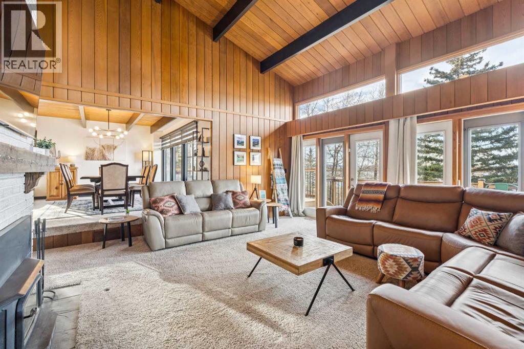 Nestled along the tranquil shores of Cochrane Lakes, this beautifully updated residence offers breathtaking lake views from nearly every room. Thoughtfully designed with timeless character and modern comfort, this home blends warmth, function, and style across all levels.As you enter, you’ll immediately notice the freshly tiled entryway and the bright, welcoming layout that’s perfect for entertaining. To your right, the fully renovated kitchen impresses with new appliances, counters, ducting, and paint, while the adjoining dining area is ideal for family gatherings. The breakfast room flooring has been redone, adding a touch of modern flair, and the formal dining room has been freshly painted.The living room offers a cozy retreat with a floor-to-ceiling brick fireplace, rebuilt and painted shelving, and floor-to-ceiling windows that frame the stunning water views. The home’s wood beams and shiplap detailing—now professionally painted—add character and warmth throughout.Upstairs features five bedrooms, all freshly updated with new carpet (2025) and a fully renovated main bathroom complete with new tile, tub, sink, toilet, and walls. The primary bedroom offers peaceful lake views and space to unwind.The basement is fully finished with a second kitchen, fireplace, large den, and recent updates including new stairway carpet (2025), bedroom paint, and a new vanity in the bathroom—perfect for guests, extended family, or to be used as a legal suite.The list of recent improvements is extensive and includes:* New roof and eavestroughs (2025, previously 2023)* Exterior paint* New front entry deck and side decking with stairs* Replaced upper deck and railing (lower deck ready for completion)* New fencing on both sides of the yard* Driveway resealed* New front yard storage shed* Completely renovated laundry room with new flooring, shelving, and appliances* Half bath renovation* Updated tiled flooring in entry and kitchen* New carpet throughout upper and base ment stairways (2025)Outside, enjoy your massive upper deck overlooking Cochrane Lakes, perfect for morning coffee or sunset gatherings. The expansive yard offers privacy, mature landscaping, and a peaceful setting just minutes from the Town of Cochrane.This property combines modern updates, rustic charm, and unbeatable lakefront views—a truly rare opportunity to own a piece of serenity so close to town. (id:36535)