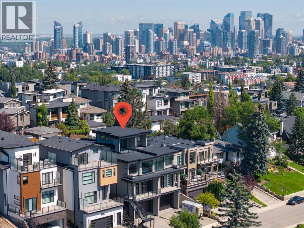 Built by renowned Design Factor Homes with over 30 years of construction experience & part of National New Home Warranty. Seldom do homes come to market with such attention to detail & quality construction - truly an engineers dream! Perched on 30th Avenue in coveted South Calgary with MOUNTAIN VIEWS & beautiful city vistas, this modern, elegant 3 bedroom home, built by Design Factor Homes offers over 3800 sq ft of exquisite, developed living space. The open & airy main level presents lofty ceilings, stylish light fixtures & feature concrete demising wall showcasing the front sitting area & spacious dining room with ample space to host family & friends. Create culinary masterpieces in the kitchen that’s tastefully finished with quartz counter tops, island/eating bar, an abundance of storage (including pantry) & high-end appliance package. The living room is anchored by a feature fireplace & has direct access to the back patio. A 2 piece powder room completes the main level. Ascend the contemporary staircase with glass wall to the second level that hosts 3 bedrooms, a 5 piece main bath & laundry room with sink & plenty of storage. The spacious primary bedroom is a true oasis, boasting it’s own wet bar, 2 walk-in closets & luxurious 6 piece ensuite with in-floor heat, dual sinks, relaxing freestanding soaker tub & rejuvenating steam shower. Revel in unobstructed mountain & city views from the rooftop patio – the perfect venue for morning coffee or watching a gorgeous sunset. Basement development includes a family/media room – perfect for game or movie night. A 3 piece bath & storage room are the finishing touches to the basement. A mudroom provides access to the heated double attached oversized garage with towering 13’ ceiling. This meticulously built home is conveniently located within walking distance to vibrant Marda Loop & close to schools, shopping, River Park & easy access to Crowchild Trail. (id:36535)