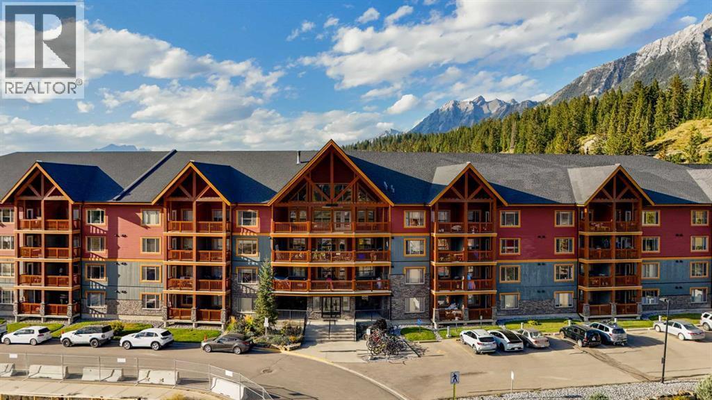 Wake up to uninterrupted mountain panoramas in this bright, refined 1-bedroom + den residence in Canmore. Elevated on the 3rd floor, the home is perfectly positioned to capture all-day natural light and sweeping Rocky Mountain views that frame every room. The gourmet kitchen, finished with granite countertops, seamlessly integrates with the dining and living areas, extending onto a private balcony where the mountains feel impossibly close. The primary bedroom enjoys the same breathtaking outlook, while the spacious den offers an ideal home office, reading room, or additional guest space.Convenience is unmatched with an outdoor parking stall steps from the entrance and an oversized 11' x 7' heated storage locker—one of the largest in the building. The community enhances your lifestyle with a fully equipped fitness centre, children’s playground, dog park, and workshop, along with direct access to scenic trails that define the Canmore experience.Secure underground parking adds an extra layer of comfort, and residents enjoy exceptional amenities including a modern fitness facility, ski and snowboard tuning room, carpentry room, and a welcoming common lounge perfect for gatherings and celebrations.This is more than a home—it’s a luxury vantage point to the Rockies and a gateway to the Canmore lifestyle. (id:36535)