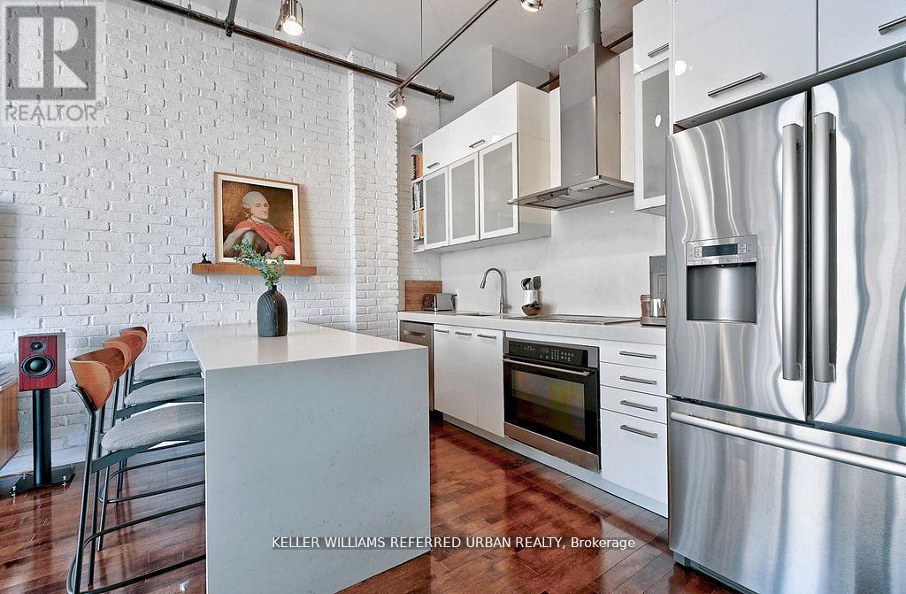 The Toy Factory Loft - Where Style Meets Substance. You've done your homework. You know the difference between hype and heritage - and only the best lofts truly hold their value. This is one of them. Welcome to The Toy Factory Lofts, Liberty Village's most sought-after address - an architectural icon celebrated for its rich character, timeless craftsmanship, and remarkably low maintenance fees. Every detail, from the exposed brick to the curated art in the hallways, tells the story of a building designed for those who appreciate authenticity and design pedigree. Inside, this rare 2-bedroom, 2-bath residence spans 1,171 sq. ft. (1,100 interior + 71 balcony) with 12-ft ceilings and an effortless open flow. The living space extends naturally to a private balcony with rare BBQ privileges - perfect for entertaining under the skyline or relaxing in your own urban oasis. At the heart of the home is a chef-inspired kitchen, anchored by a 7.5-ft Caesar stone island and complemented by custom cabinetry, designer finishes, and a premium appliance suite (36" Bosch fridge, Bosch dishwasher, Electrolux cooktop + oven). Every upgrade has been chosen with intent - from Riobel fixtures and barn doors to California Closets, automated blinds, and Farrow & Ball designer paint. But the Toy Factory is more than a building - it's a benchmark. The city's most respected loft conversion, it offers unmatched quality, unbeatable location, and value!!! (id:36535)