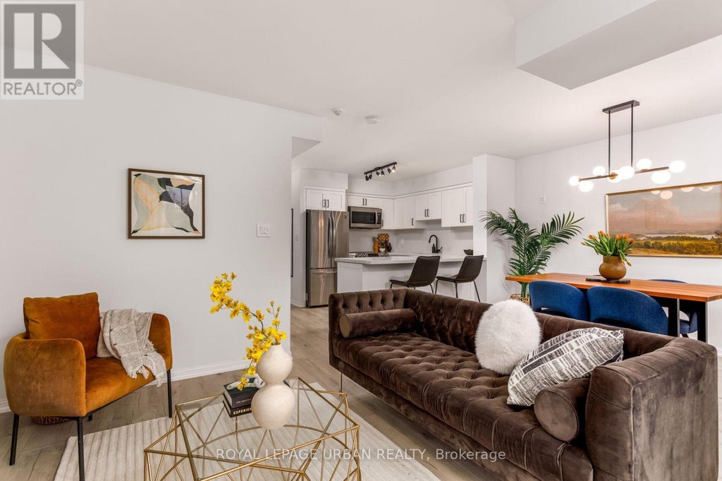 Tucked away on a quiet, tree-lined street perfectly situated betweenTrinity Bellwoods and King West, this bright and beautifully renovated 2-bedroom, 2-bath townhome is the perfect blend of style, comfort, and downtown energy. Completely renovated in 2021, no detail was overlooked - from the modern kitchen with all-new appliances, counters, backsplash, cabinetry, and sink, to the brand-new bathrooms with vanities, faucets, and toilets, plus new flooring and lighting. The open-concept main level is spacious, light-filled, and perfect for entertaining, featuring a breakfast bar and seamless walkout to a private terrace where BBQs are allowed - ideal for morning coffee or evening relaxation. Upstairs, both generous bedrooms offer balcony access; the primary suite also boasts his & hers closets and a spa-like ensuite. Extra perks include in-suite laundry, clever under-stair storage, private underground parking, and locker. Residents enjoy shared amenities with 1000 King St W, including a gym, party room, library, and visitor parking. The location is unbeatable, the streetcar at your doorstep, parks, restaurants on both Ossington and King West and all the great cafes and vibes that Queen West have to offer - a rare downtown gem you'll love! (id:36535)