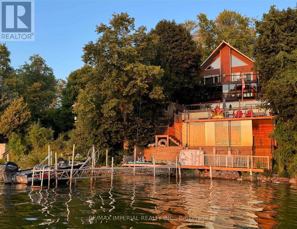 One-of-a-kind chalet-style waterfront home on Lake Scugog! Premium swimmable hard-sand shoreline with breathtaking sunsets & direct access to the Trent-Severn Waterway. Year-round fun fishing, paddle boarding, swimming & snowmobiling! Quality craftsmanship throughout: vaulted ceilings, exposed beams, hardwood floors & open-concept main level. Family room & dining room feature soaring 18-ft ceilings with walk-out to lakeview deck. Newly completed 4-level decks lead from the backyard down to the private dockperfect for BBQs, entertaining, exercise or relaxing at sunset. Main floor includes a convenient bedroom. Loft rec room w/catwalk captures panoramic views. Lower level offers a gas fireplace, sunroom walk-out, primary w/heated ensuite, 2 more bedrooms & 6-pc bath. Finished 340 sq ft walkout basement with 5th bedroom & sep entrance. Additional features: Drilled Well (2022), Natural Gas on street & Fibre Optic Internet. A rare lakeside retreat! (id:36535)