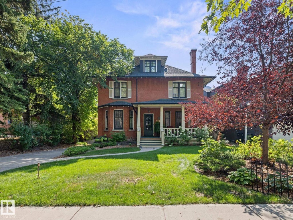 Grand Westmount Ravine Estate with Walkout Basement – 4,756.70 SqFt of total livable space (3,274.19 SqFt above grade + 1,472.51 SqFt walkout basement) of Timeless Living Experience the rare blend of heritage elegance & expansive modern comfort at this stately 1912-built residence on a 1/3 AC ravine lot in Historic Westmount. Extensively renovated & expanded in 2010, this is a 5-bedroom + sunroom, 4-bathroom home. The original living & dining rooms feature oversized 1912 trim & a NG FP insert, the spacious primary suite offers a NG FP, in-floor heated ensuite, & spa en suite. Radiant heating throughout, including in-floor heat in the boot room & oversized 1.5 attached garage (with drain). The professionally landscaped, south-facing backyard is a private retreat with 2 decks - a large one off the kitchen & nook, & a second-floor balcony with ravine views - plus walkout basement. Additional upgrades: a NG FP in the basement family room a 2013 shingled roof, & modern mechanicals. All this, steps to 124 St. (id:36535)