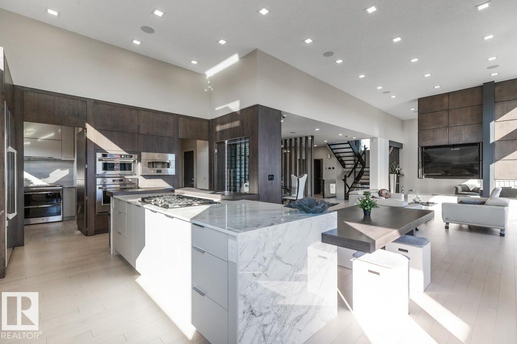 STUNNING 2019 DREAMLIFE LOTTERY GRAND PRIZE HOME!  Open concept main floor w/ a multitude of upgrades including Opti-Myst fireplace & two-sided, glass-door wine display separate the Kitchen & Dining Room.  Kitchen has numerous custom features incl: a pizza oven, 5 ft wide galley sink, & two hidden doors leading to a Spice Kitchen.  On the upper floors, both bdrms have their own ensuites & walk-in closets. Primary bdrm is a true retreat - sitting area complete w/ coffee/bar area & Montigo Peninsula gas fireplace.  Ensuite belongs in a 5 Star Hotel along w/ the Dressing Room.  Lower level is equipped w/ gym, rec room & a third wet bar. Manicured, massive, pie lot (1,325 m2) is fully fenced & showcases a multi-game sport court for basketball, pickleball or badminton. Triple Garage.  Luxurious home is located in a quiet cul-de-sac.  Easy access to all amenities - Parks, Trails, Schools, Restaurants, Golf, Henday & Airport.  Unique & functional 5,300+ sq ft property by Award Winning Builder. (id:36535)