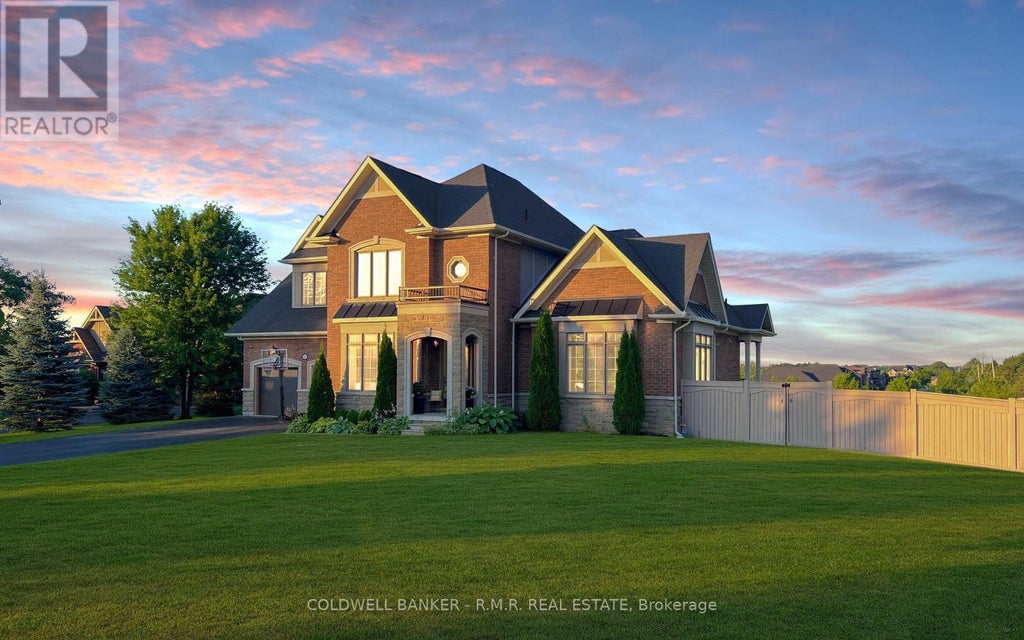 A stunning Sheffield model home nestled within the prestigious Estates of Wyndance a gated community offering luxury, privacy, and an unmatched lifestyle. Situated on a 1.17-acre corner lot, this 4-bedroom, 4-bathroom executive residence boasts breathtaking panoramic views & over 3,489 sq. ft. of above-grade living space, designed for both elegance & comfort. Step inside to find hardwood floors throughout, beautifully accented by wainscoting, tray ceilings & intricate moldings. The spacious family room features a double-sided gas fireplace, creating a cozy ambiance that extends into the formal living room. The gourmet chef's kitchen is a culinary dream, complete with granite countertops, a center island, and top-of-the-line stainless steel appliances, including a Sub-Zero fridge & Wolf range. Adjacent to the kitchen, the breakfast area leads to an expansive covered deck, perfect for outdoor dining while soaking in the picturesque skyline views. The 2nd floor is equally impressive, featuring a luxurious primary suite with his-and-hers walk-in closets & 5-pc spa-like ensuite. 3 additional bedrooms, all with ensuite or semi-ensuite access, provide ample space for family & guests. The unfinished walk-out basement presents a world of possibilities! Whether you envision an in-law suite, a home gym, or a recreational haven, the space is already equipped with a separate entrance, large windows, a rough-in for a 4-piece bathroom, and plenty of room for customization. Car enthusiasts will love the three-car tandem garage, complemented by a spacious 8-car driveway, ensuring ample parking for family & guests. Exclusive amenities, includes 2 gated entrances, scenic walking trails & landscaped ponds, basketball & tennis courts, a charming community gazebo and a lifetime platinum-level golf membership to the renowned Clublink Golf Course. This remarkable property is located just minutes from schools, parks, & shopping, while still offering the tranquility of country estate living (id:36535)