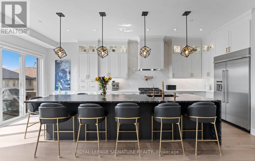 Welcome to 29 Sikura Circle! This stunning 4-bedroom, 5-bathroom home boasts over 3,000 square feet of beautifully finished living space, offering the perfect blend of luxury, functionality, and contemporary design. As you step inside, you're greeted by 10-foot smooth ceilings on the main level, creating an expansive and open atmosphere throughout the home. The custom modern kitchen is a chef's dream, featuring high-end appliances, oversized 16' island with waterfall upgrade, finished with textured leather granite, full wet bar in the dining room, and ample storage space, perfect for both everyday meals and entertaining. Top of the line pot lights are seamlessly integrated throughout the home, adding a touch of elegance and illumination to every room. The spacious living and dining areas are bathed in natural light, with the south-facing backyard providing the perfect setting for outdoor relaxation and entertaining. The main level and basement also feature upgraded stair lights for added luxury and visual appeal. Upstairs, you'll find 9-foot smooth ceilings and generously sized bedrooms, including a luxurious primary suite with an ensuite bath designed for ultimate relaxation. The bright finished walk-out basement features smooth ceilings, a full kitchen, additional bedroom, and full bathroom. It provides additional living space, with a separate side door entrance. This home has been freshly painted and is move-in ready, offering everything you need for modern living. Located in a highly sought-after neighborhood, 29 Sikura Circle is within walking distance to parks, schools, and shops, and offers quick access to major highways for an easy commute to Toronto and beyond. Don't miss the opportunity to make this exquisite property your own! (id:36535)