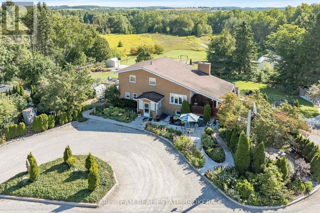 Top 5 Reasons You Will Love This Home: 1) Nestled on 12.5 picturesque acres, this exceptional property incorporates manicured lawns, vibrant gardens, and your very own private pond, offering a peaceful, storybook setting to call home 2) Designed for effortless entertaining, the open-concept layout features a soaring vaulted ceiling in the living room, an airy floor plan, and an abundance of natural light that creates a warm, inviting atmosphere 3) Upstairs, discover three bright and generously-sized bedrooms, each with double closets for ample storage, complemented by a centrally located family bathroom designed for everyday ease 4) The finished basement is a versatile retreat, perfect for movie nights, a games area, and extended family or guests 5) Perched above the backyard, the home offers sweeping views of the surrounding landscape, with ample space for a future shop or detached garage. 1,657 above grade sq.ft. plus a finished basement. (id:36535)