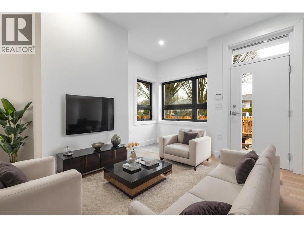 Welcome to your new home in the serene Collingwood neighbourhood, this 3-bed, 2.5 bath triplex unit boasts contemporary finishes and design, perfect for modern living. Enjoy a quiet, family-oriented atmosphere on a beautiful mature tree-lined street, in this sought after and vibrant East Vancouver neighbourhood. Steps away from John Norquay Elementary School and walking distance to a wide variety of retail, restaurants and cafés, this home has it all! With its open concept floor plan, wide-plank laminate flooring, contemporary LED lighting throughout, brand name faucets and hardware in matte black finish, quartz countertops, Fisher & Paykel appliances, designated car port, EV charger, and bike storage, discover elegance and affordability harmoniously combined in this exquisite residence. OPEN HOUSE SATURDAY OCTOBER 4 FROM 2PM to 4PM (id:36535)