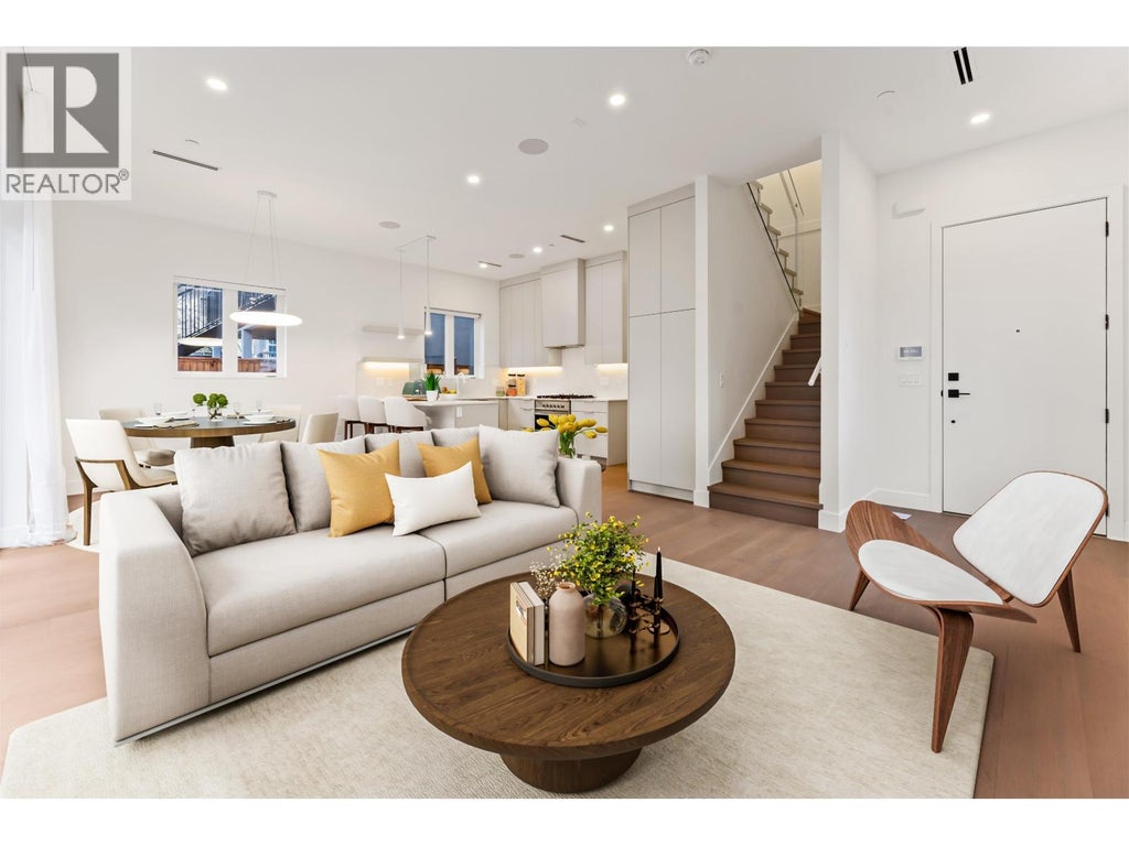 Welcome home to this brand new 3 bed/4 bath 1/2 duplex in Grandview Woodlands! Thoughtfully designed, this home offers a seamless blend of contemporary style & quality finishes with an efficient floor plan. Main level features 10 ft high ceilings, living room is complete with a gas fireplace and a 12 foot sliding glass doors, a well appointed kitchen with Fisher & Paykel appliance package. The second level boasts the bright primary bedroom w/ensuite, a 2nd spacious bedroom w/ensuite and the laundry. Top level offers a spacious 3rd bedroom & full bath. This home comes fully equipped with A/C, 635 sqft crawl space for storage, extensive millwork, a one car garage with EV charging capability, and private yard. Call for viewing appointment. (id:36535)
