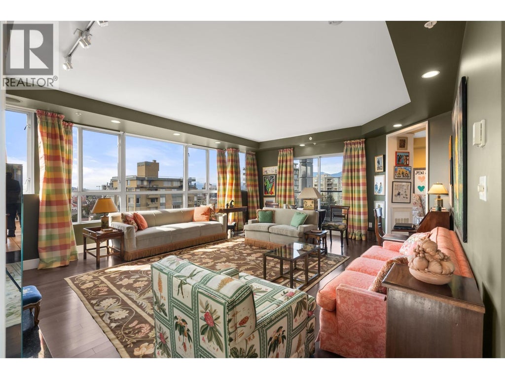 When you walk off the elevator directly into this home with 1880 sqft of living space, you'll know that you're in something special. 360 degree views over the entire city, spacious living areas and 4 patios, one on each corner. Meticulously well kept, this 2 bedroom 2.5 bathroom home has high end finishes, modern updates and clever design such as the library which opens into living room. Large bedrooms both with ensuites and walk-in closets. This home is suited both for entertaining and comfort. Solid concrete construction ensures peace and privacy. Rare extras such as the underground 3 car private garage and a private storage room that is over 80 sqft. Located close to South Granville shopping and entertainment, and centrally located to all areas of the city and downtown. Call to view! (id:36535)