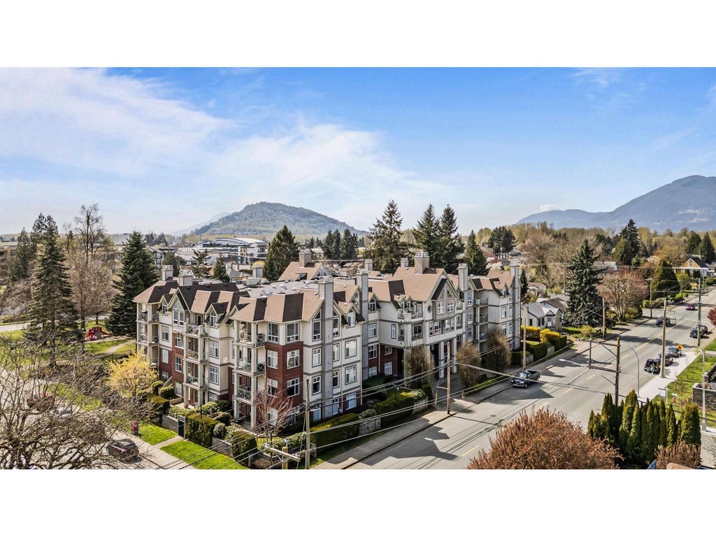 TOP FLOOR PENTHOUSE @ The Devonshire! Fabulous 2 bedroom and 2 bathroom condo in walking distance to the trendy DISTRICT 1881 with ample shops and restaurants. This building backs onto a park and is blocks from the Chilliwack Cultural Center, the Landing Leisure Center, Chilliwack curling club, pickleball courts- you name it! Step inside this PENTHOUSE unit and be amazed at the 12' vaulted ceilings, abundance of natural light, and great layout. Large rooms, spacious kitchen, & primary suite w/ dual closets & ensuite washroom. Well maintained home ready for your decorating touches! This building features underground parking, amenities, a guest suite, & is very well managed. 2 small pets allowed up to 15 lbs each and all ages welcome. * PREC - Personal Real Estate Corporation (id:36535)