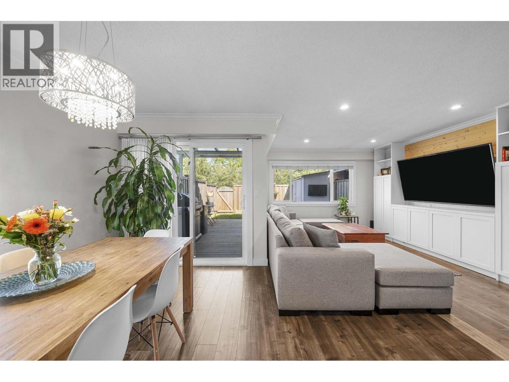 Stunning, fully renovated 3 bedroom, 2 bathroom, end unit townhouse in sought-after Steveston! This 1,428 sqft gem boasts an open-concept layout with a gourmet kitchen featuring quartz countertops, designer backsplash, and stainless steel appliances. The bright living area radiates with natural light, showcasing pot lights, laminate floors, electric fireplace, and custom built-in shelving around a stylish entertainment hub. Upstairs, three spacious bedrooms include a master with walk-in closet, remote-controlled blackout blinds, plus a spa-inspired bathroom with heated floors. Enjoy a private patio, perfect for gatherings, with outdoor TV and storage shed. Well-run strata, with EV charging, new fencing, and a warm community feel. Steps to Steveston Village, shops, parks, and top schools. (id:36535)