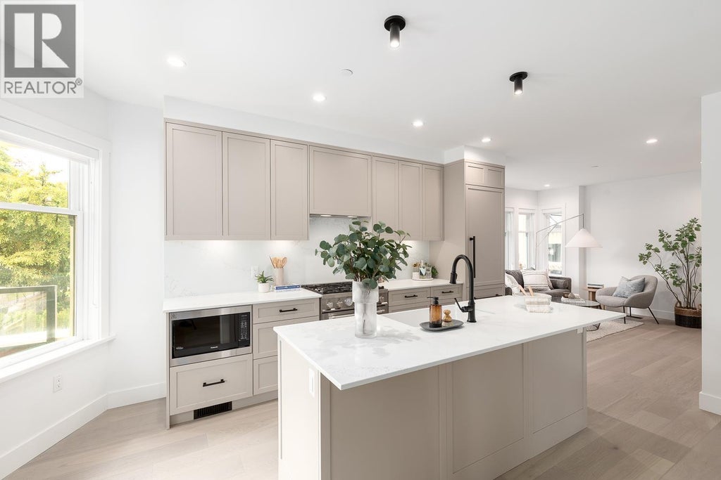 Finally, the heritage jewel in the crown that is Gibson House is ready to show! At almost 2000 square feet, it's our largest home and shows more like a house than a half duplex. Superior build quality, open living, kitchen and dining, main floor powder and that gorgeous front porch and sunny bay window, it's a perfect blend of character features and clean modern interior. Bertazzoni gas range, Fisher and Paykel appliances, breakfast bar, and stylish cabinetry, it's a chef's dream. Upstairs find three beds, and two full baths. Unique bonus is a fourth bedroom, full bath and recreation area in the basement with separate entrance - perfect nanny suite. (id:36535)