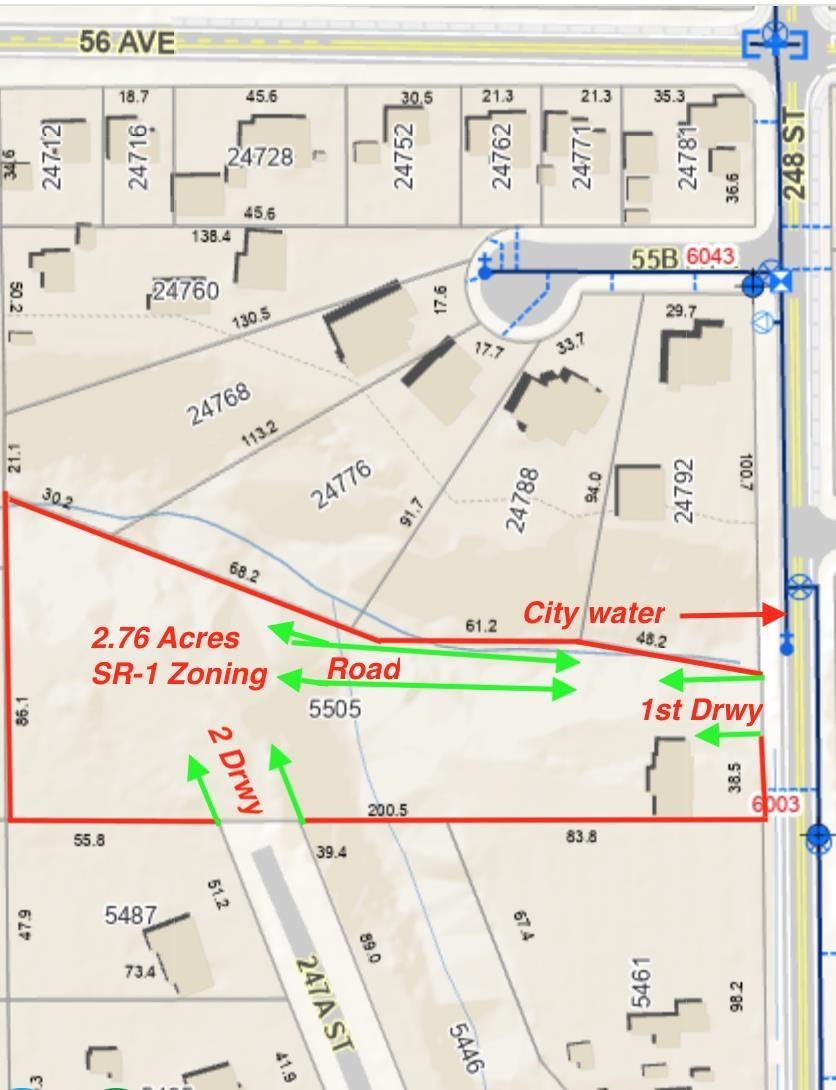This 2.76-acre property offers endless possibilities, featuring a 2,350 sqft. home currently rented for $3,700/month plus utilities, providing immediate income with potential for additional revenue and separate road access. With two road frontages, including a quiet no-thru access from 247A Street, the property is surrounded by mature apple and plum trees, making it an ideal site to build your custom home and/or workshop. Enjoy the peaceful, retreat-like setting with nearby trails, all while being within walking distance to schools and local amenities, truly a rare opportunity in a highly desirable neighbourhood. (id:36535)