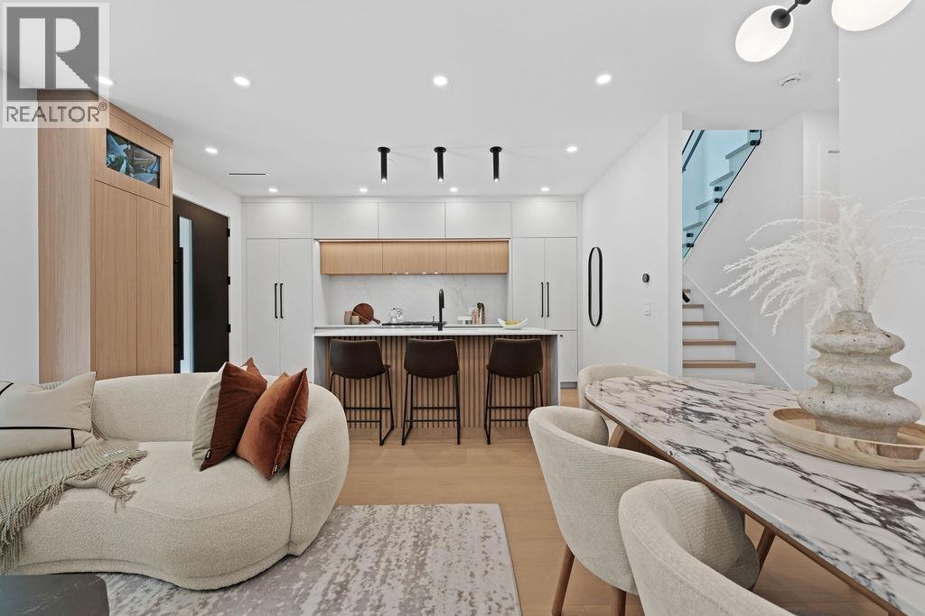 Welcome to this exquisite front 1/2 duplex in the heart of Dunbar, built by renowned Westside builder Mann Bros Construction. Offering almost 1600sq.ft of living space across 3 levels, this home is a masterpiece of design & craftsmanship with no detail spared & only the best materials used. The main floor boasts an expansive, open-concept layout that seamlessly connects the living, dining & kitchen areas. Large eclipse doors open to a lovely front yard. Upstairs, you'll find 3 generously sized bdrms, each with its own luxurious ensuite & custom cabinetry. The top floor is a versatile space, ideal as a bdrm, home office or rec room & it includes its own private balcony. Additional features include a one car garage, in-floor radiant heat , A/C & a security system. (id:36535)