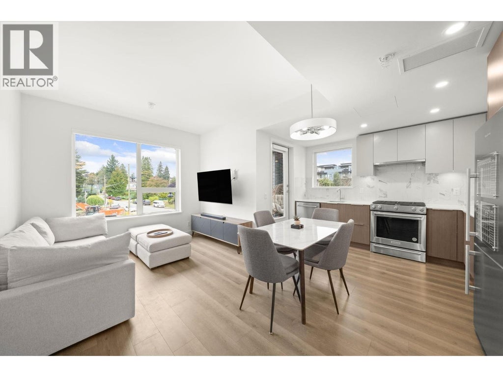 Welcome home to Port & Mill by Streetside! This 825 SF, 2 Bed + Den, 2 Full bath, CORNER SUITE features 9'0 ceiling heights, laminate floors throughout, quartz countertops, FORCED AIR HEATING & COOLING, sleek tile backsplashes, under cabinet lighting, gas range, s/s appliances, KOHLER fixtures, 1 Locker, & 1 Parking. Both bedrooms are on opposite sides of the home for extra privacy. Enjoy mountain views & BBQ's from your private 123 SF wrap around balcony. Amenities include huge outdoor BBQ & patio seating area, playground, fitness room, & social lounge room for events. Easy access to SFU, & only steps to Burquitlam SkyTrain Station, Safeway, YMCA, Bjornbar Bakery, & much more! MUST SEE VIRTUAL TOUR! (id:36535)