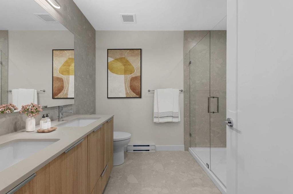Welcome to South Village Condos designed by VESTA at Latimer Heights. TOP FLOOR CORNER UNIT that offers 934sqft of thoughtfully designed living space. This unit features 2 bed + 2 full bathrooms with a rare SEPERATE Living & Dining area complemented with high ceilings. Enjoy abundant natural light year-round with large windows on both sides of the unit. For added privacy, this unit is conveniently located beside the stairs. Features an open concept kitchen with spacious island, Gas range hood, stainless steel appliances, AC Wall unit and contemporary light colour scheme. South Village condos is ideally located just minutes from top-rated schools, shopping, parks, Carvolth Bus Exchange, Langley Event Centre and Hwy 1. Comes with One EV capable Parking stall plus 1 storage locker. (id:36535)