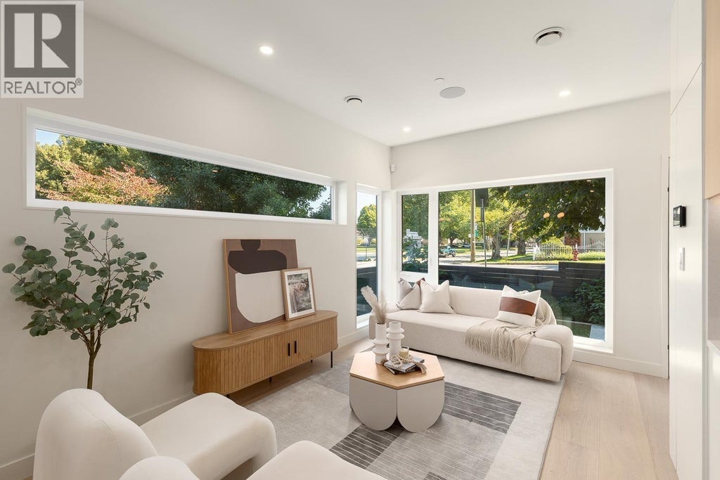 Welcome to Wales Park by VanMosa Properties-an exclusive collection of boutique park side homes offering exceptional quality and craftsmanship, designed by Architrix & built by Glenmark Homes. This 3-bdrm 1/2 duplex sits directly across from Norquay Park & is thoughtfully designed with Caesarstone countertops, white oak custom cabinetry, Fisher & Paykel appliances & Brizo luxe gold fixtures. Additional highlights include air conditioning, automated lighting, in-ceiling speakers, sensor-activated cabinet lighting, soundproofing & crawlspace storage. With parkside & mountain views, stunning natural light, and a layout that balances elegance with everyday functionality, this is a rare opportunity to own in one of East Vancouver“s most connected and walkable neighbourhoods. OPEN HOUSE: Sat Nov 1 @2-4pm (id:36535)