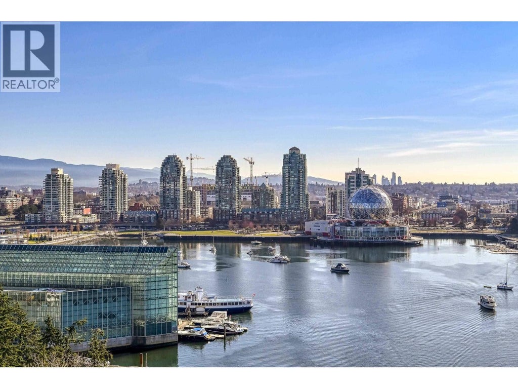 Welcome to Flagship! Enjoy spectacular panoramic views of False Creek. The grand living space, with a gas fireplace and floor-to-ceiling windows, is perfect for entertaining. The modern kitchen features European cabinets, Sub-Zero and Miele appliances, a large island with a 5-burner gas cooktop, and a spacious dining room. The master retreat and ensuite also showcase incredible water views. The layout includes a separated second bedroom with water views. Additional features include A/C, concierge service, and luxurious amenities such as an indoor pool, guest suite, bowling alley, and fitness center. Located on the Seawall, next to Cooper's Park, and steps from marinas, entertainment, restaurants, cafes, and shopping, this rare opportunity includes 1 parking in garage and storage. (id:36535)