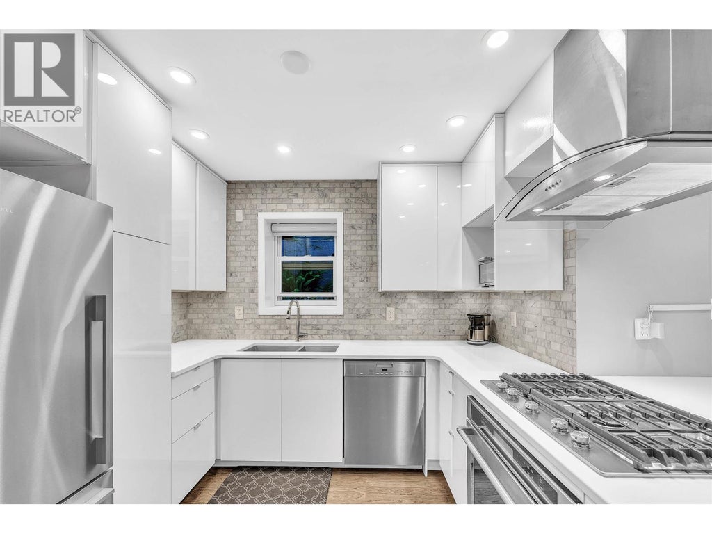 Beautifully renovated 2-bed townhome blends refined design with unbeatable walkability. 2 blocks from W 4th´s vibrant shops and cafés and mins. from Kits Beach. The chef´s kitchen flows into a spacious living space with gas fireplace and direct access to a private, south-facing patio. A bright bed and full bathroom are located on the main level, while the upper level is dedicated to a spacious primary retreat complete with custom built-ins and a sophisticated ensuite featuring a new vanity, quartz counters, and a double walk-in shower. Renovations completed with permits in 2018, including a new hot water tank. Quiet, well-managed 4-unit strata, low monthly fees. Included: wall-mounted 64" LG TV (like new), BBQ, double Murphy bed, shared bike room, and ample in-unit storage. (id:36535)