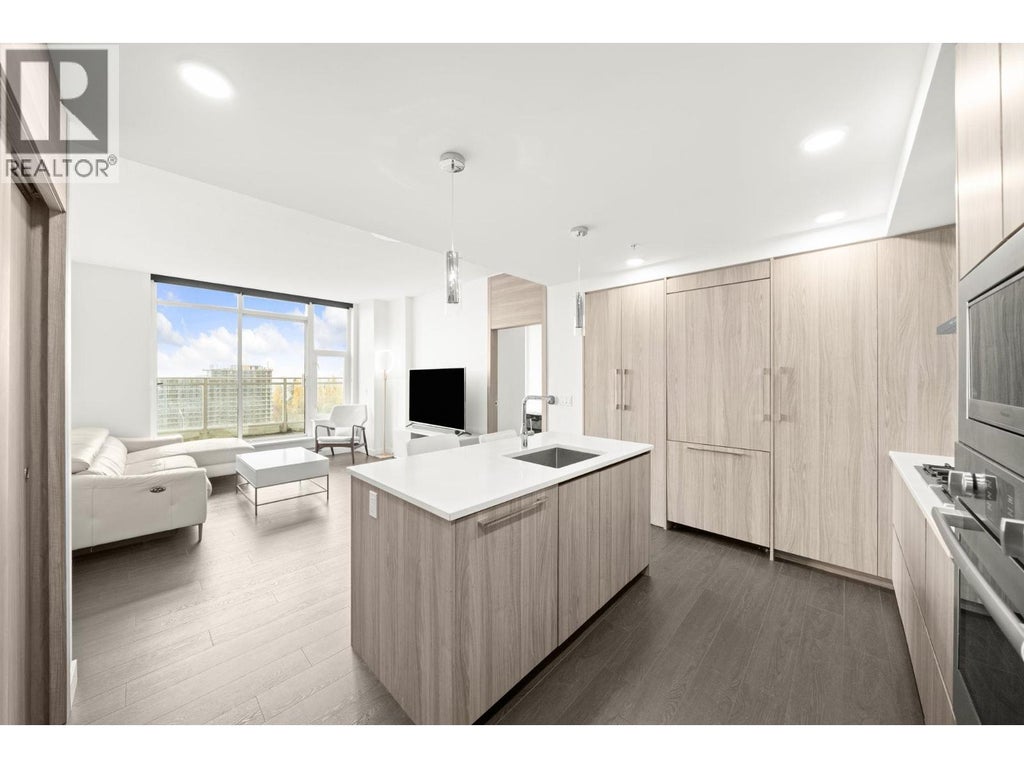 Stunning SE FACING SUB-PENTHOUSE at PARK ESTATES II with expansive views including Mount Baker, featuring soaring over-height ceilings and floor-to-ceiling windows, the home is filled with brilliant natural light from the morning sun. This exceptional layout includes two ensuite bedrooms, a high-end kitchen with fully integrated Bosch appliances, a 5-burner gas cooktop, with built-in shelving and storage throughout. Step outside onto the wraparound balcony and take in the expansive city and mountain vistas. Enjoy five-star amenities, including a state-of-the-art fitness centre, golf simulator, movie theatre, party room, bowling alley, swimming pool with hot tub, sauna, indoor gym, and more. Call to book your private appointment! (id:36535)
