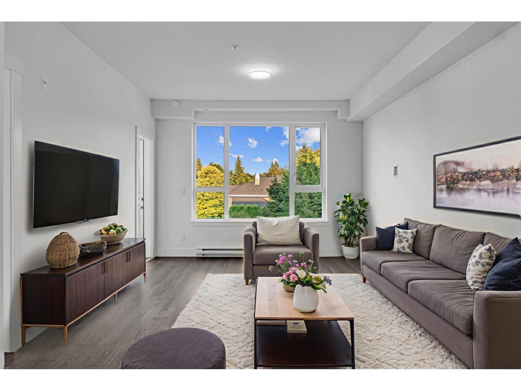 FEELS BRAND NEW! Welcome to this stunning 2 bed + den, 2 bath condo in the heart of Fraser Heights! Built in 2018, offers high ceilings, expansive windows, and a spacious open-concept layout. The modern kitchen boasts white cabinetry, natural quartz countertops, a marble-inspired backsplash, and premium Whirlpool stainless steel appliances. Over 1000 sq ft of living space, 2 STORAGE LOCKERS and 2 oversized balconies this unit gives you plenty of space to enjoy! Located in a highly sought-after neighborhood with top-rated schools, parks, and amenities, plus easy access to Guildford Town Centre, Langley and Vancouver. Convenient new #338 bus route nearby. Open house Sat, Nov 22nd, 2pm-4pm. (id:36535)